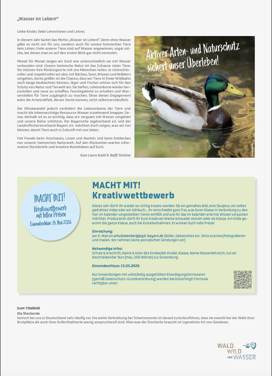 Schulkalender “Wald, Wild und Wasser” 2026